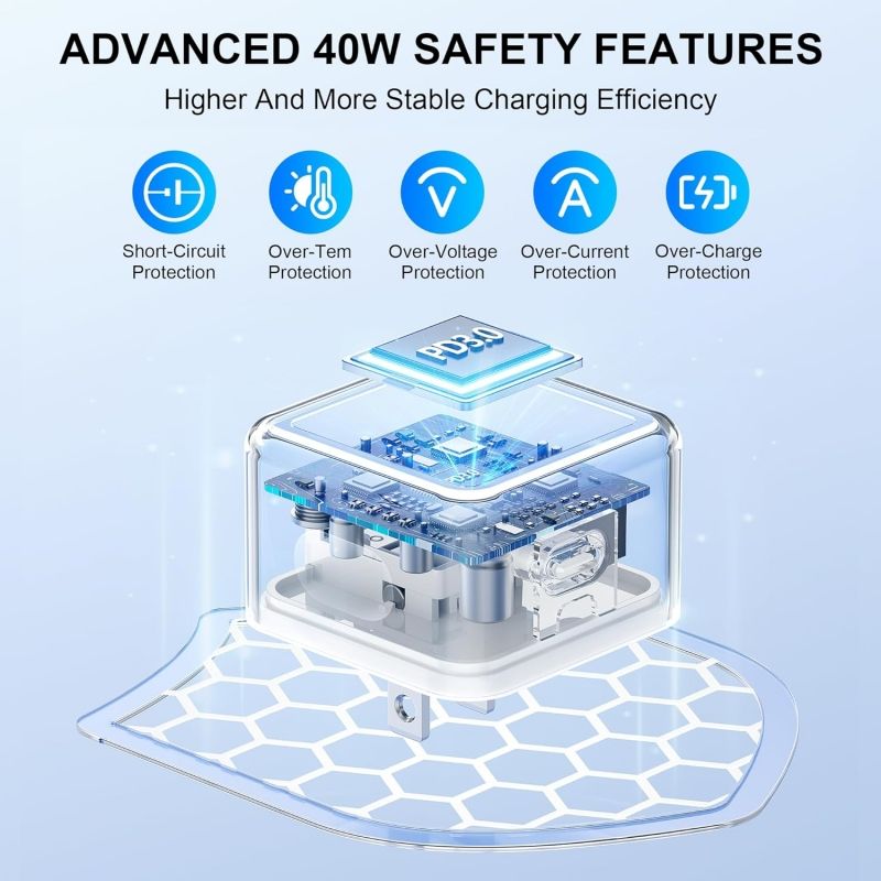 Adaptador para iPhone, Cargador Rápido USB C de 40W para iPhone 17/16/16 Pro/16 Pro Max/15/15 Plus/15 Pro/15 Pro Max