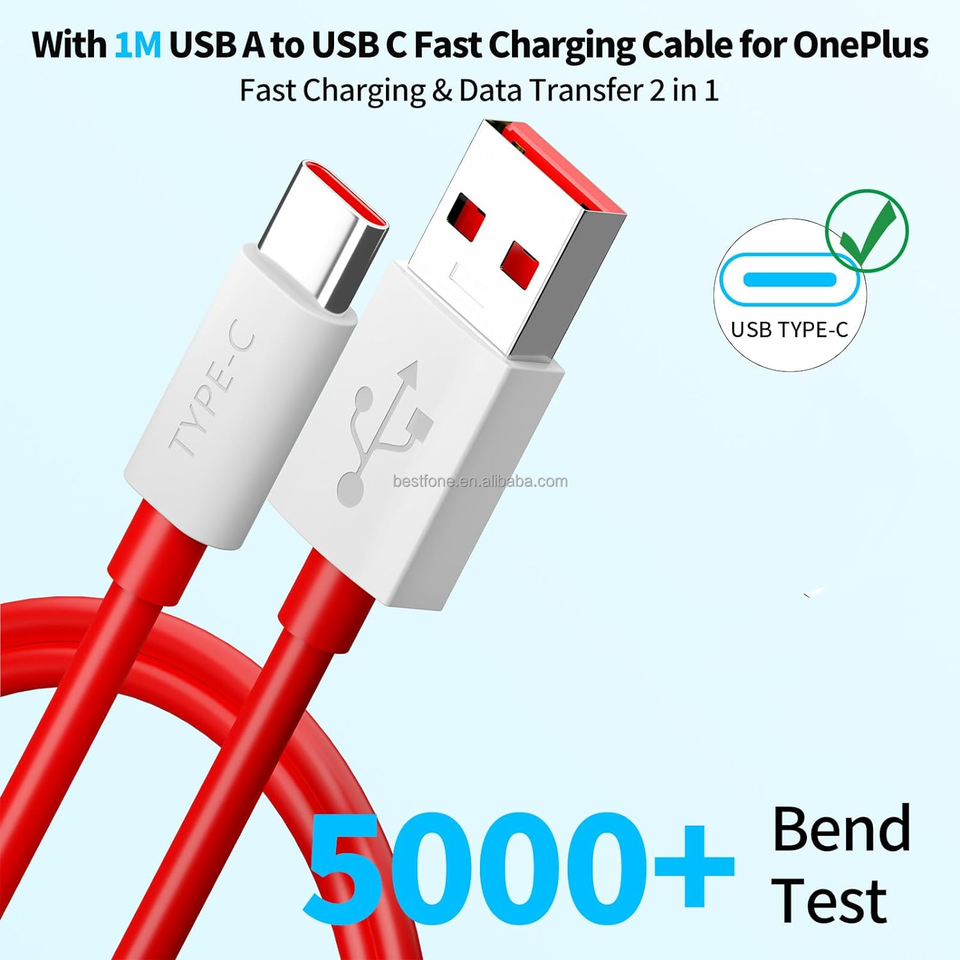 Cargador rápido para oneplus de 80W con cable USB tipo C adaptador de corriente USB de 80W para OnePlus 12 12R 11 10 9 8 Pro Nord 2T CE 3 2 Lite