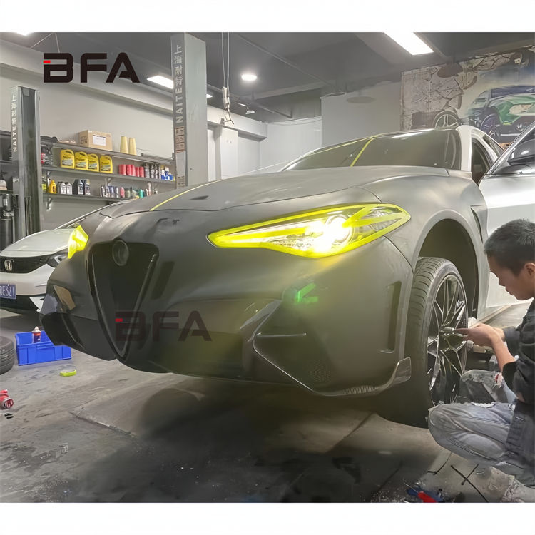 Para la actualización de Alfa Romeo Giulia al kit de carrocería de ala de falda lateral de parachoques delantero y trasero de fibra de semi-carbono estilo GTAm