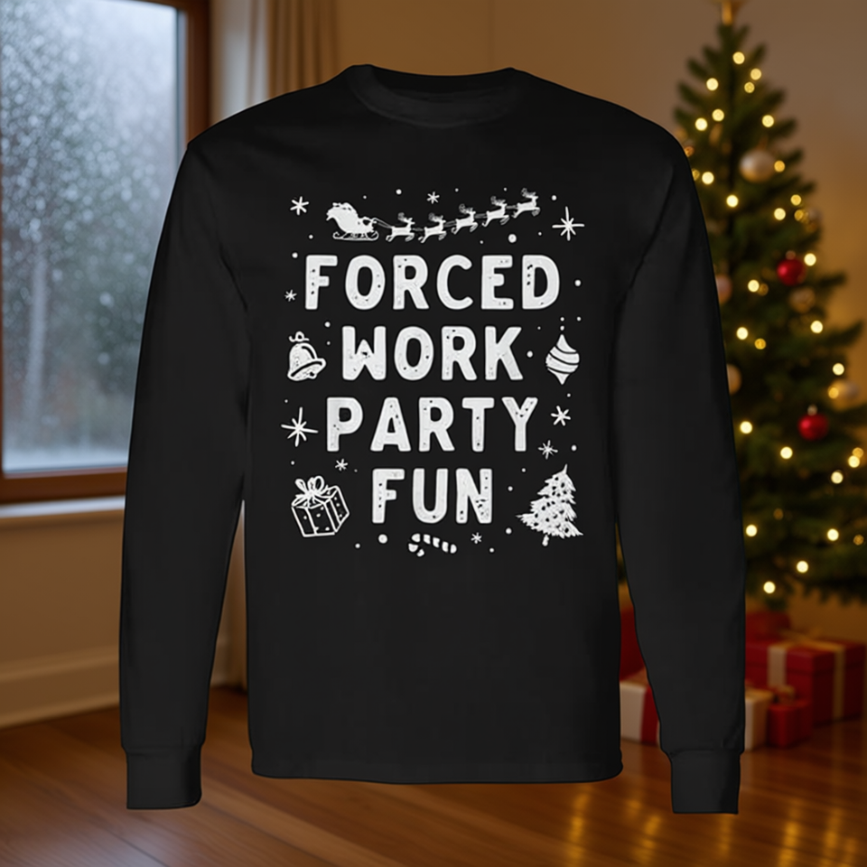 Camiseta de manga larga para fiesta de trabajo forzada, divertida, navideña, ropa navideña