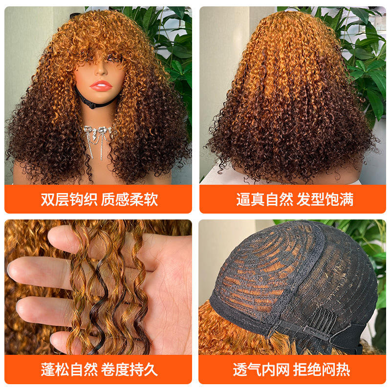 El cabello largo y rizado puede ser plano o inclinadoPeinado peluca