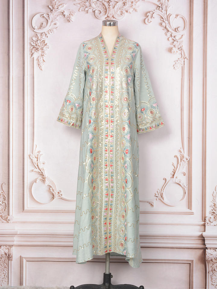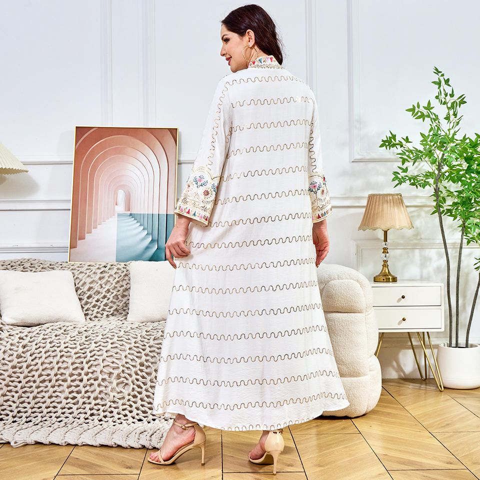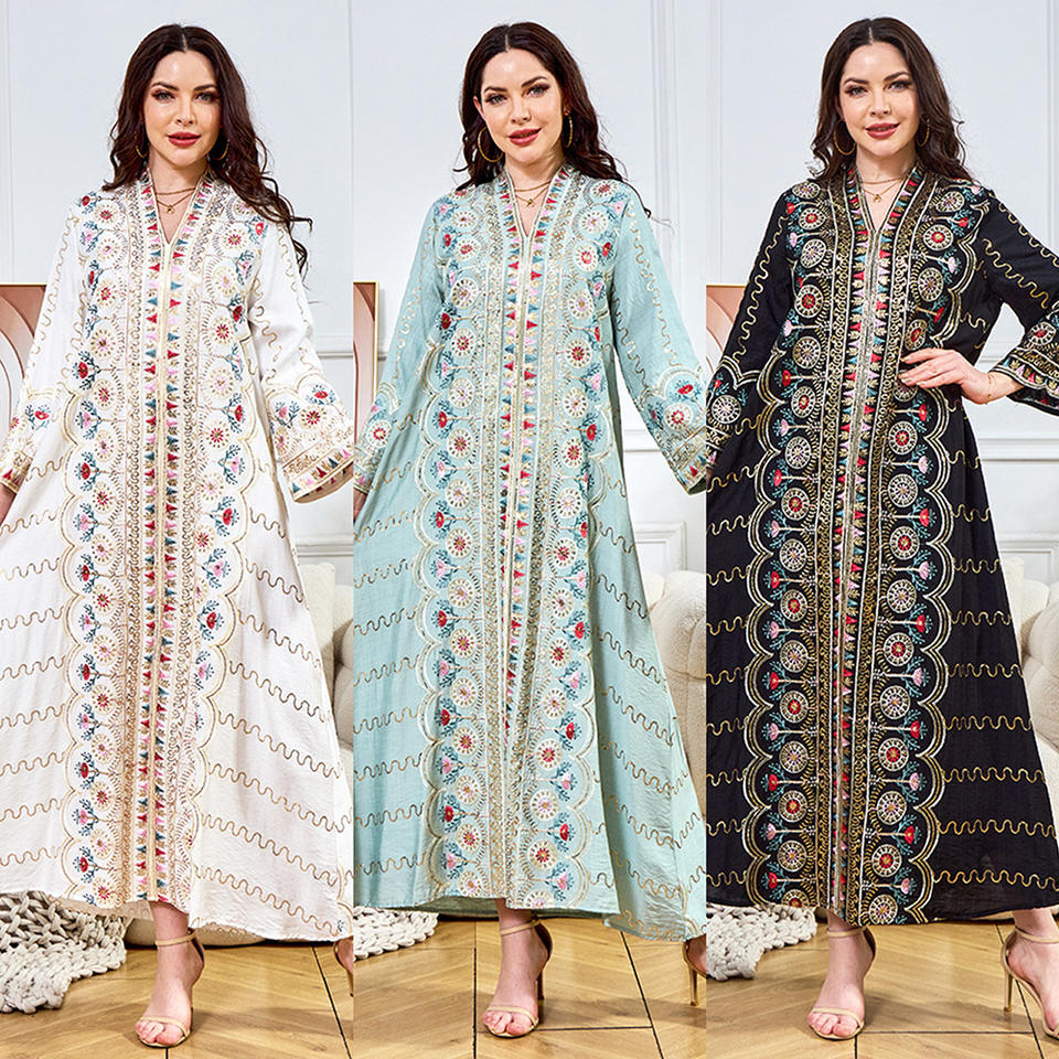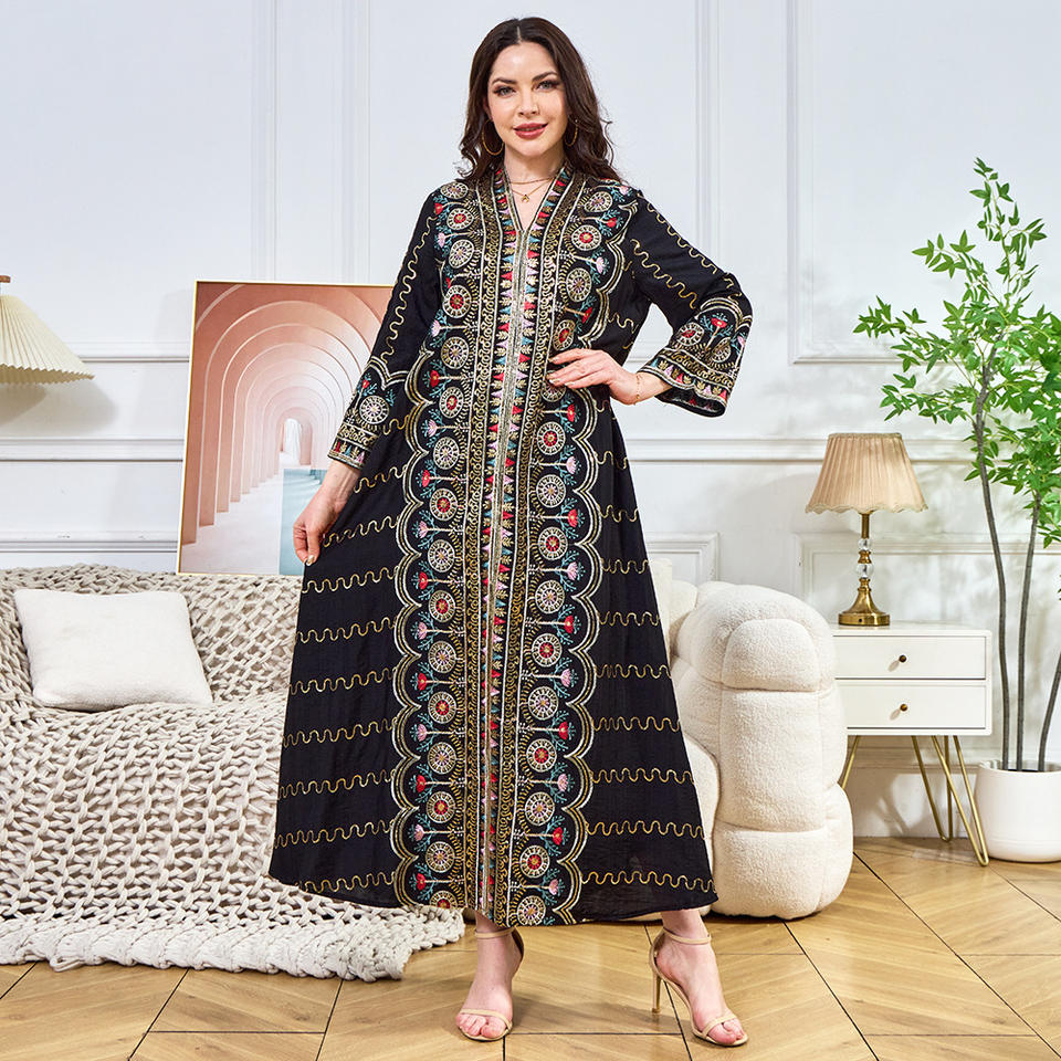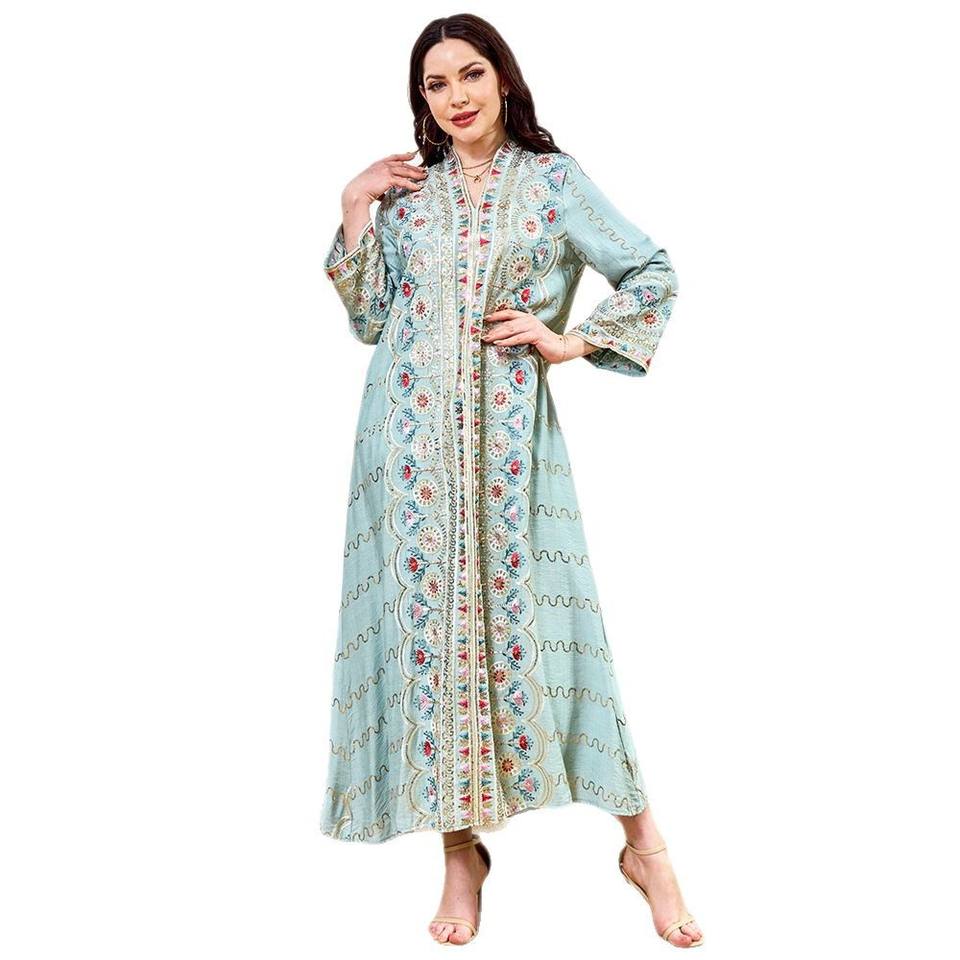 Vestido de Noche Elegante para Mujer, Estilo Árabe de Oriente Medio, Falda Larga de Poliéster, Cuello en V, con Cuentas, Nuevo 2025