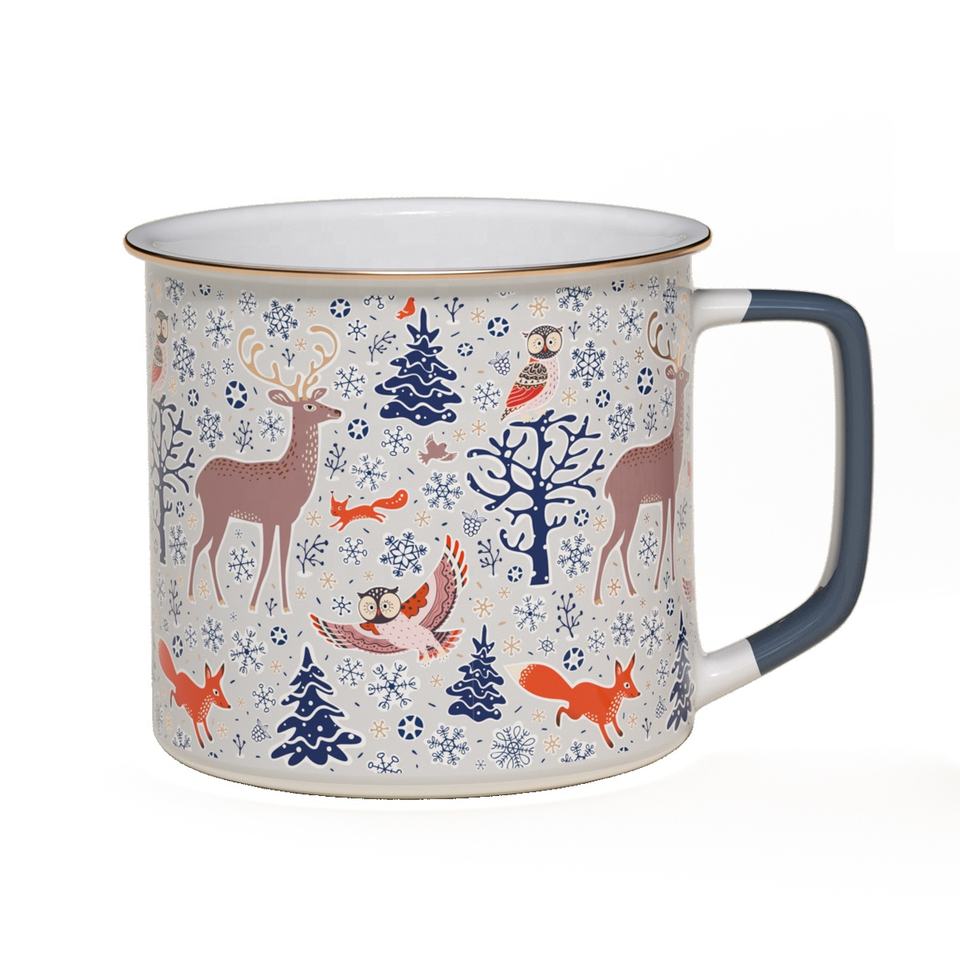 Taza de café de cerámica de 12oz con diseño personalizado de Forest and Deer View