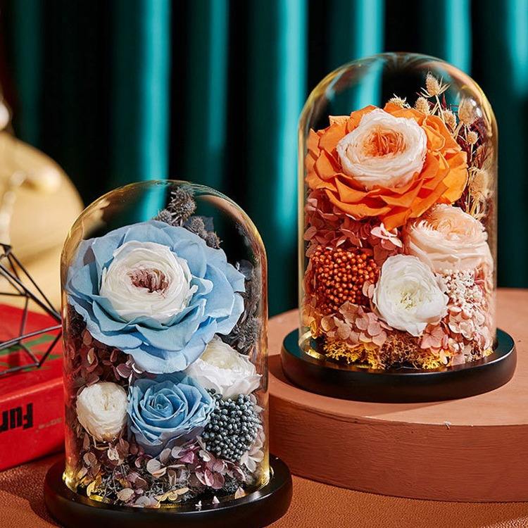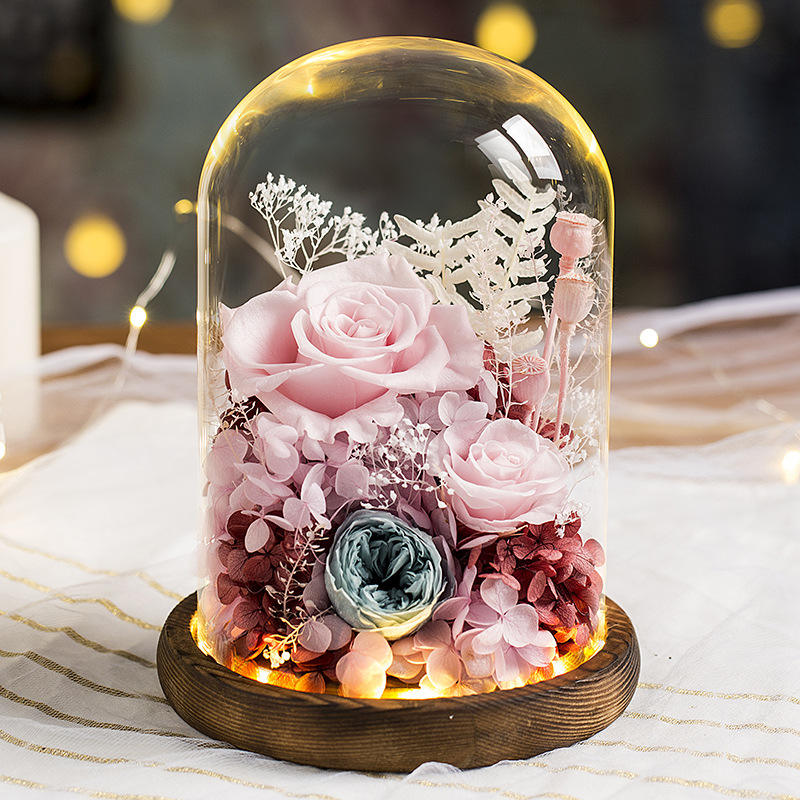 Rosas Eternas Hechas a Mano con Luz LED en Cúpula de Cristal para el Día de la Madre, Navidad, Graduación, Año Nuevo Chino, Acción de Gracias