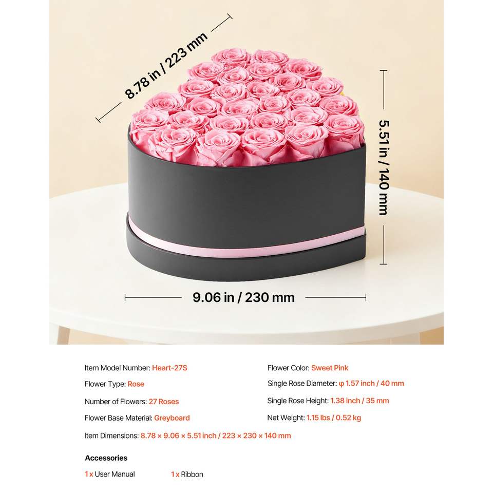 Flores Eternas, Caja con Forma de Corazón con 27 Rosas Preservadas, Ramo de Cumpleaños Inmortal para Mujeres y Esposas, Regalo Eterno