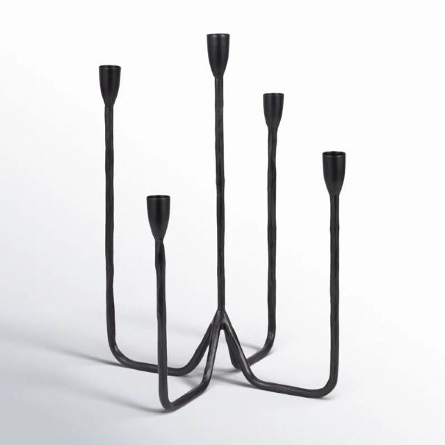 Portavelas de aluminio negro de cinco cónicos forjados, pieza central para mesa de comedor, chimenea, repisa, boda o decoración del hogar