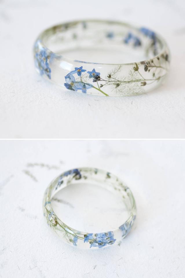 Brazalete de resina con diseño de olvido de mis encontros - Brazalete botánico floral - Brazalete tipo cuff