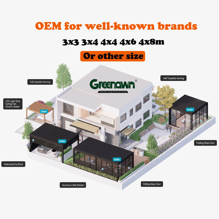 Optional accessories:Side screen/ LED Light/Wind & rain sensor/Heater,etc