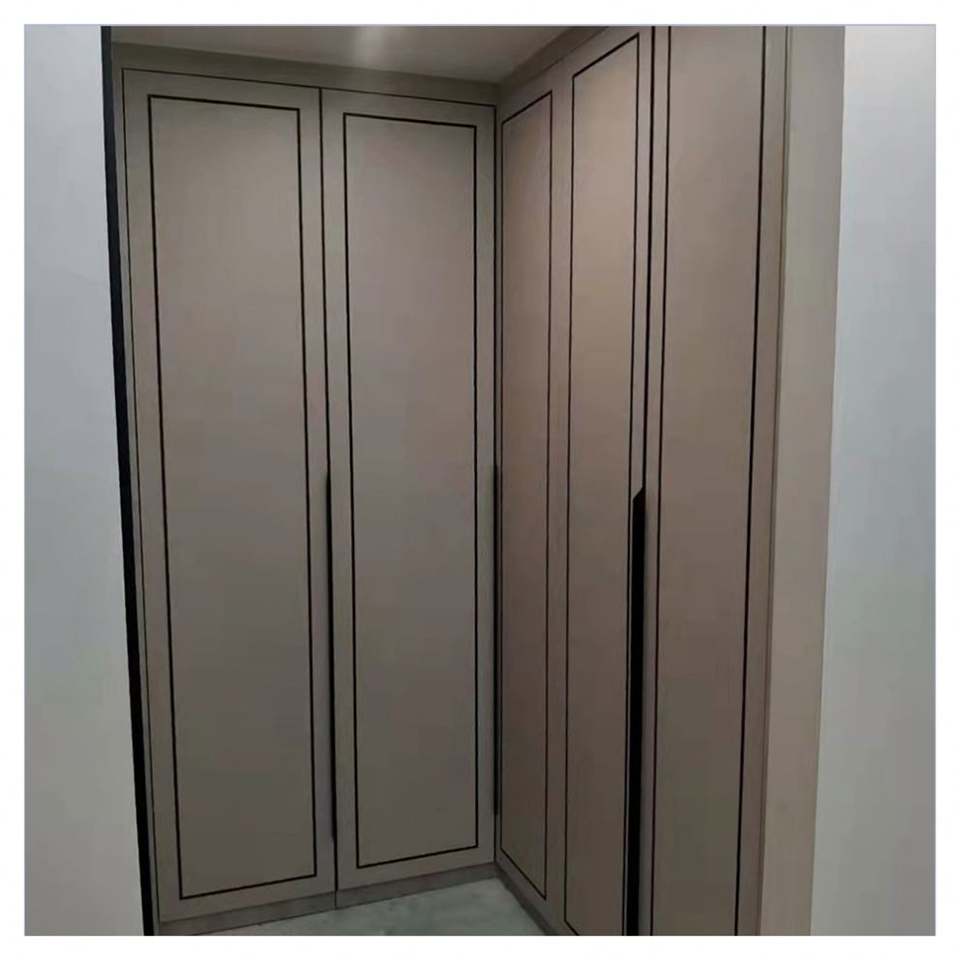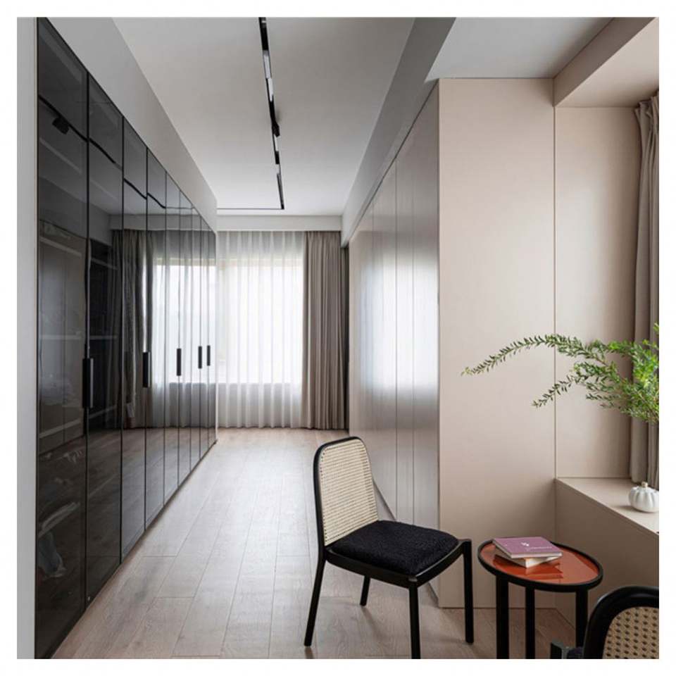 Armario Empotrado de Color Beige Simple, Suministro de Fábrica de Foshan, Combinación de Armario de Madera Personalizado con Puerta de Espejo y Cajones