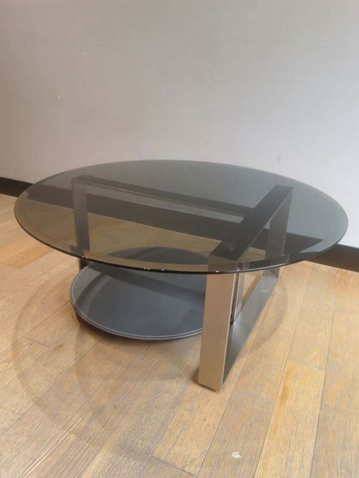 Nombre del producto:Mesa baja de dos niveles Mesa de centro redonda de vidrio Foshan
