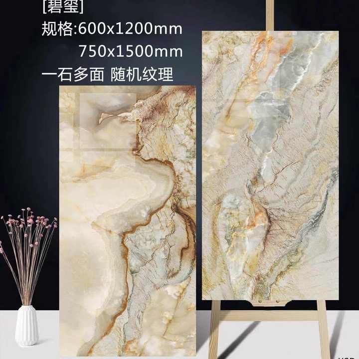 Foshan, diseño moderno de lujo, 600x1200, azulejos vitrificados de Jade amarillo, azulejos de umbral de pared Interior y suelo para sala de estar, casa