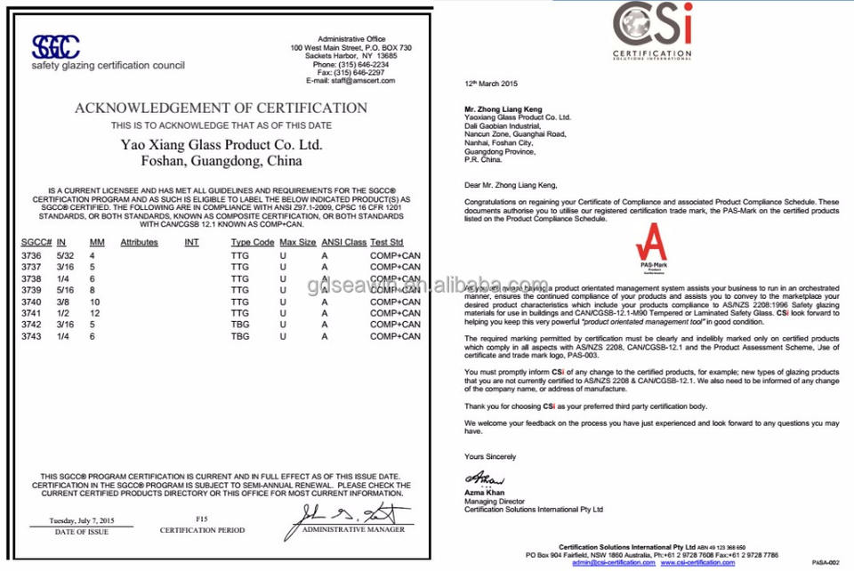 certificación:CSI/SGCC/ANSI