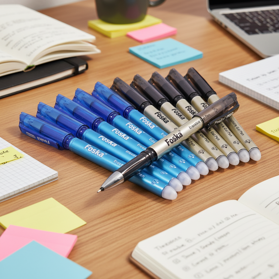 Foska Muestra gratis Escritura precisa y suave Pluma de tinta de gel borrable fácil de borrar de punta media de 0,5mm con barril de pluma transparente