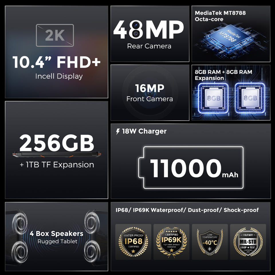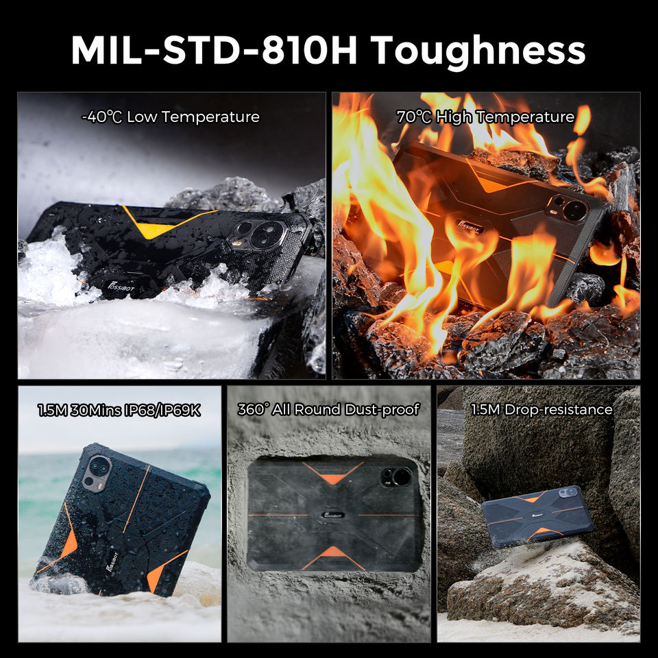 Tableta Industrial Resistente Fossibot DT1 con NFC, Huella Dactilar y Reconocimiento Facial, Tableta Resistente con Android 13, IP68 Resistente al Agua