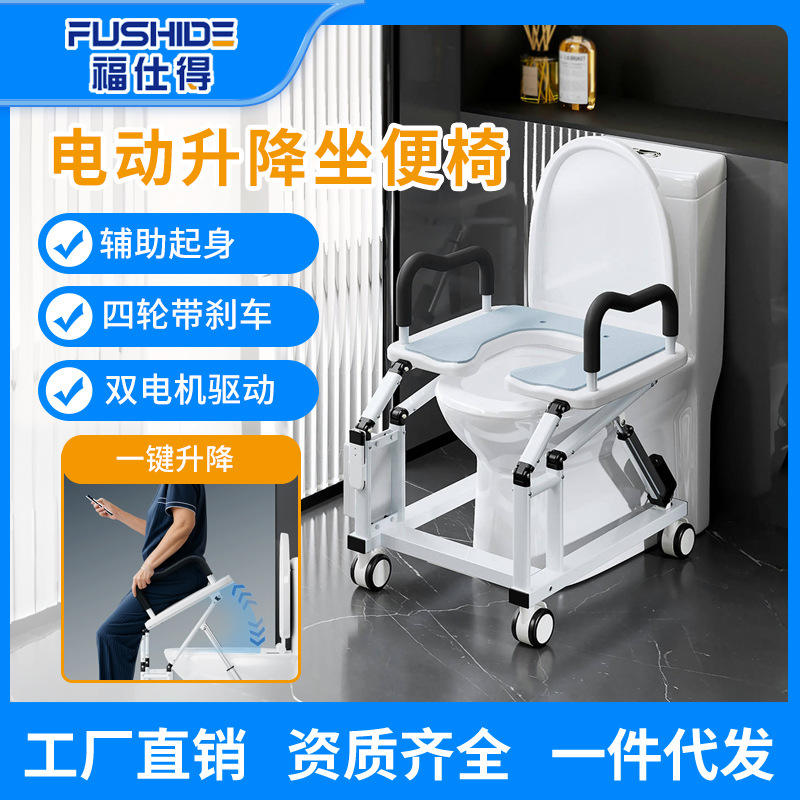 Silla de inodoro eléctrica ajustable en altura Foster YC131 con soporte de pasamanos para pacientes mayores y mujeres embarazadas