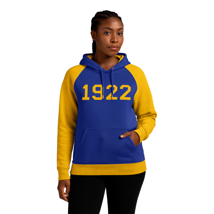 Año de Fundación 1922 Sigma Gamma Rho Blue Body Gold Raglan Sleeves Pullover Hoodie SGRho Sorority Apparel Divine Nine HBCU