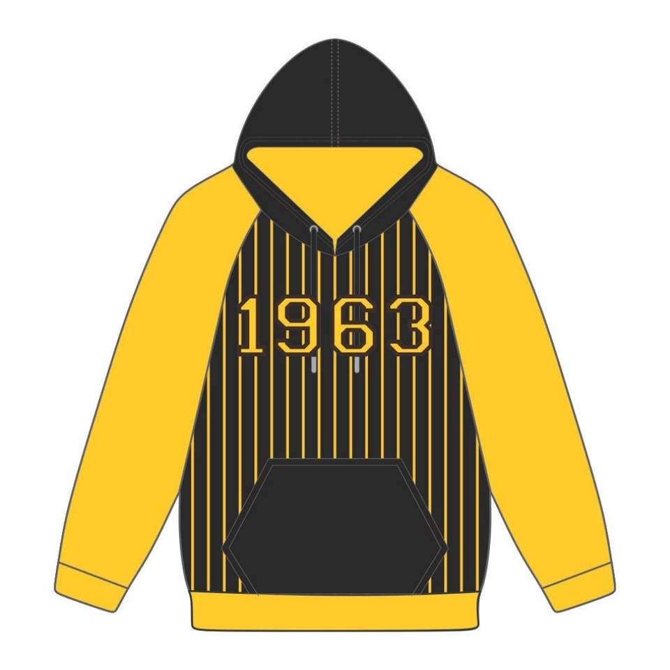 Año de Fundación 1963 Iota Phi Theta Black Body Gold Raglan Pinstripes Pullover Hoodie Greek Fraternity Apparel Divine Nine HBCU