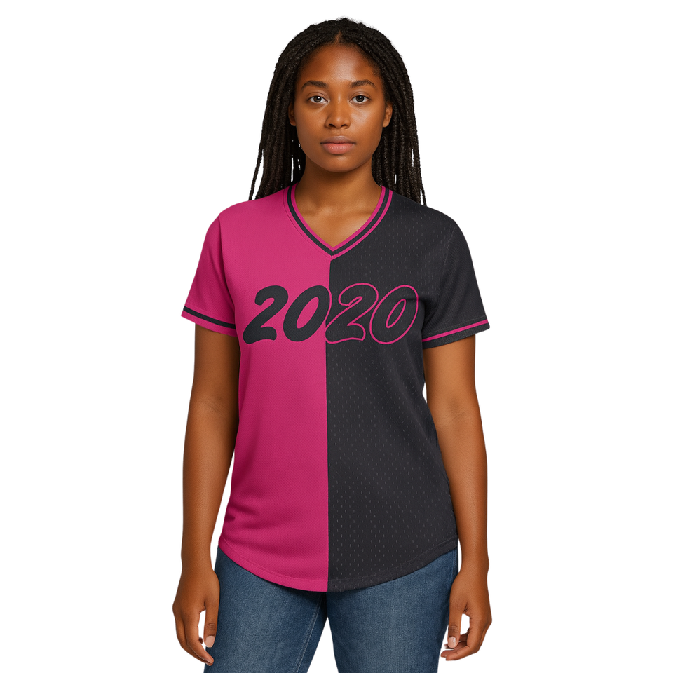 Año de Fundación 2020 Delta Psi Rho Sorority Half and Half Pullover Camiseta de béisbol 100 Malla de poliéster Cuello en V Camiseta de dos tonos
