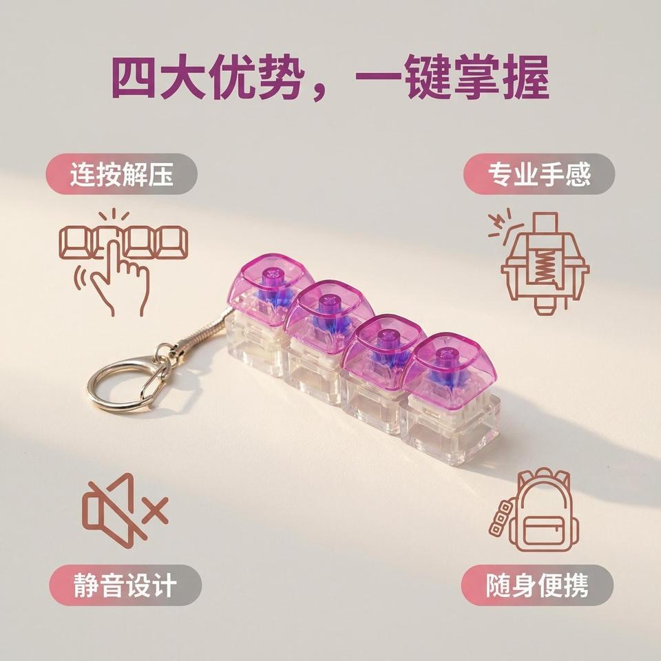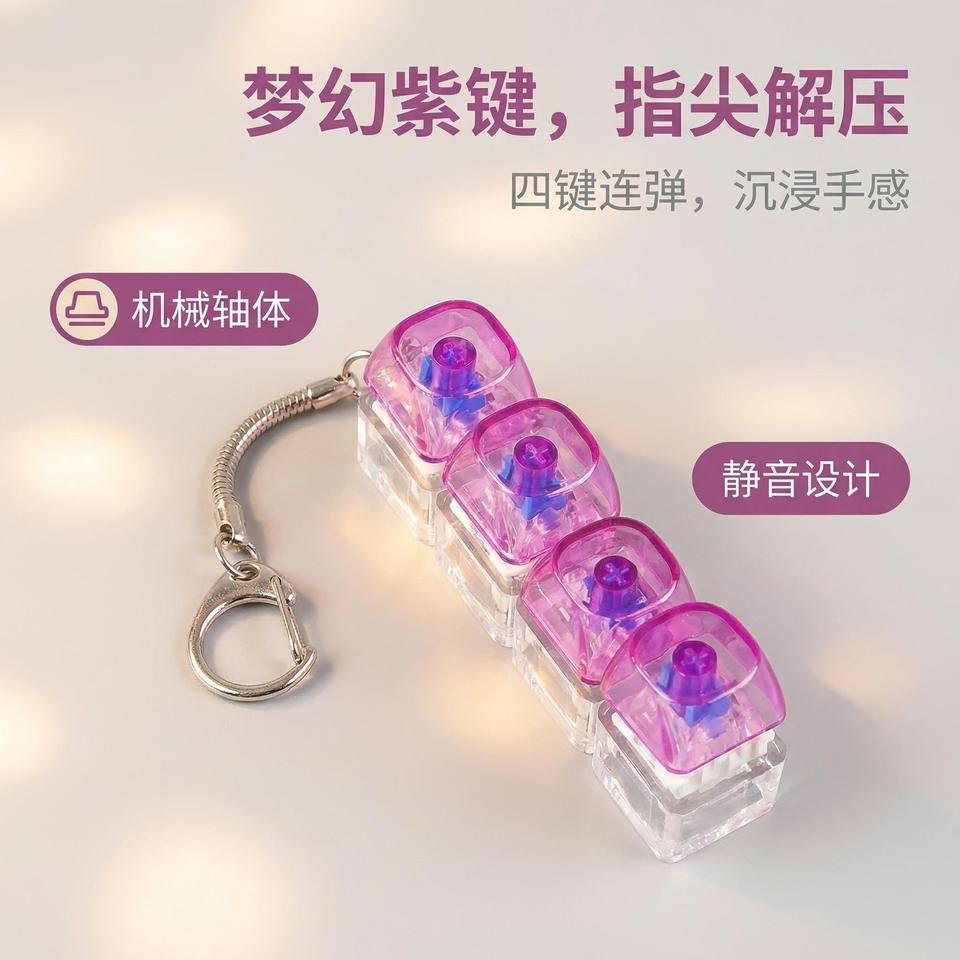Juguete Antiestrés de Plástico No Tóxico con Cuatro Botones, Llavero Mecánico con Tapa Rectangular Transparente, Alivio del Estrés para Adultos y Jóvenes