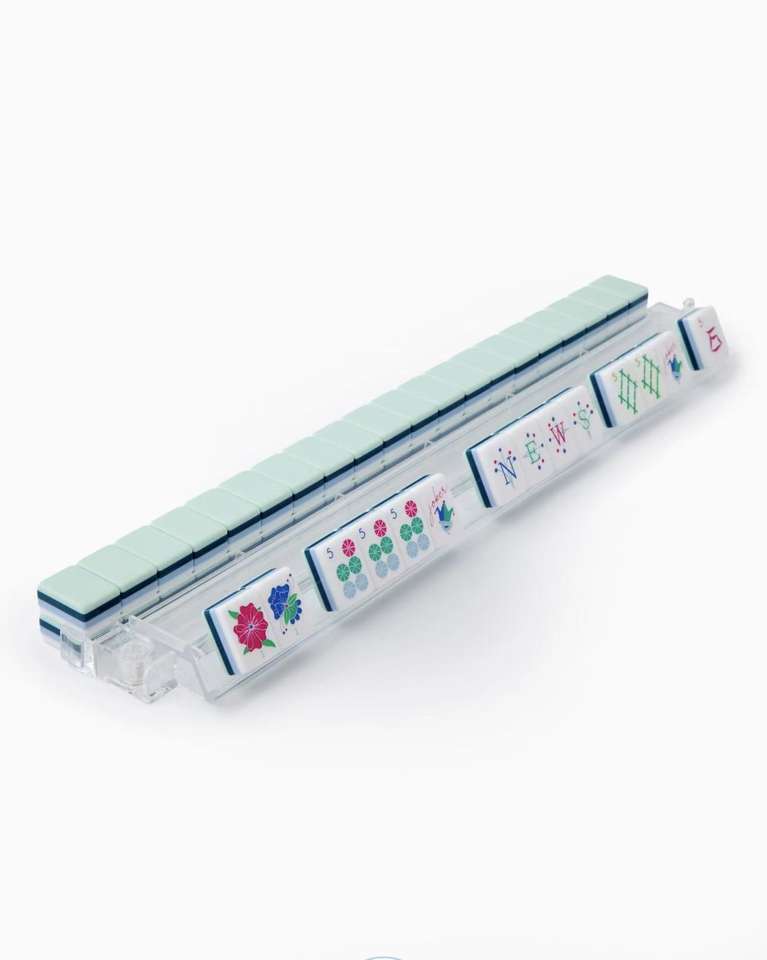 Juego Completo de Cuatro Capas de Fichas de Mahjong Acrílicas Impresas con Láser en Verde Menta, Caja de Ajedrez Creativa, Juego Familiar de Lujo para Niños