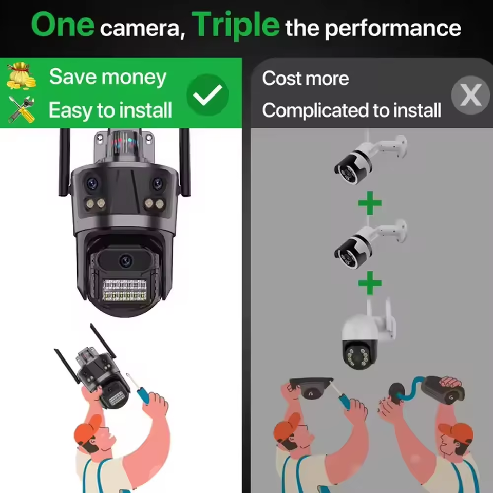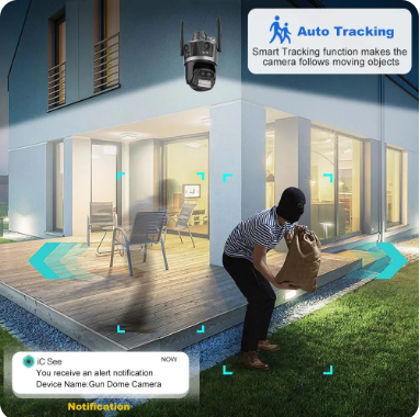 Cámara IP con zoom 8x de cuatro lentes, Detección automática de movimiento humano, fácil instalación, cámara Wifi, Audio bidireccional para exteriores, cámara de red de almacenamiento en la nube