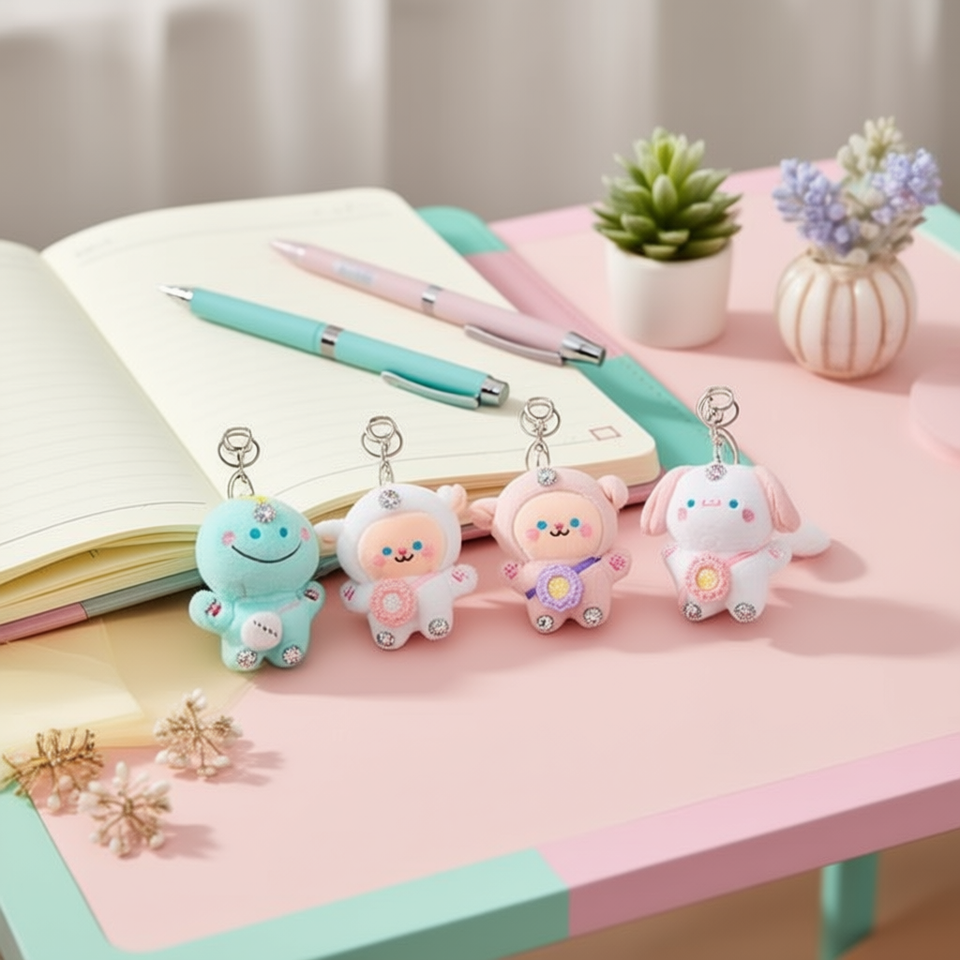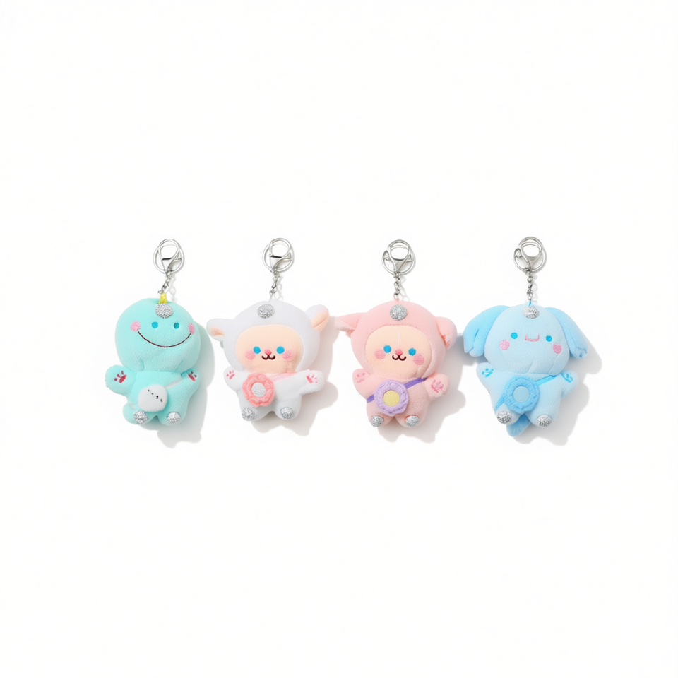 Llavero de cuatro piezas con forma de mochila y diamantes de imitación, 10x12cm, para bolso y llaves