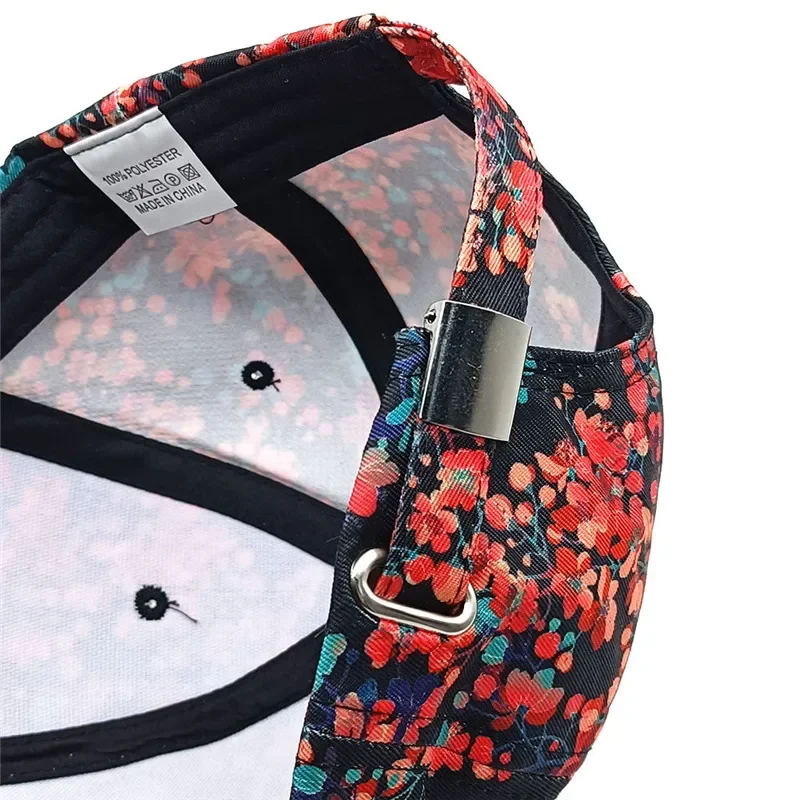 Gorra de Béisbol con Estampado Floral de Poliéster para las Cuatro Estaciones, Ajustable, con Cierre a Presión, para Exteriores