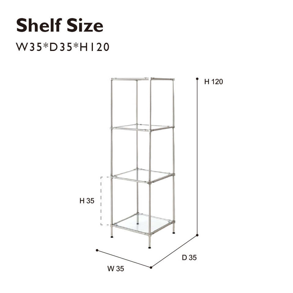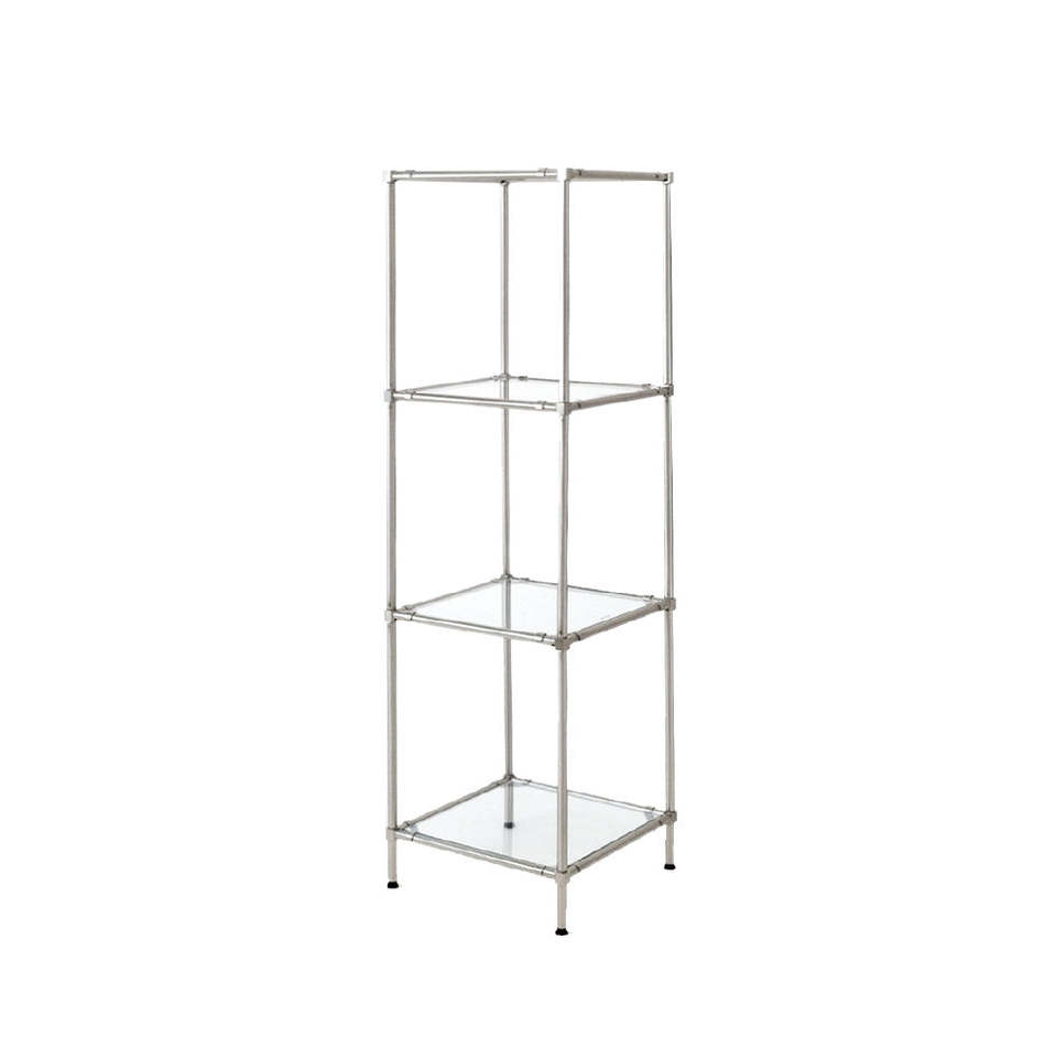 Sistema de estante de vidrio de cuatro niveles, paquete de cartón estándar, UPC/etiquetado