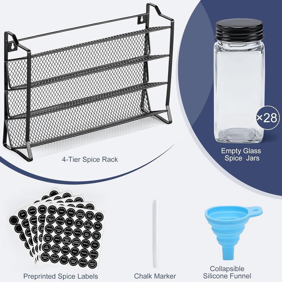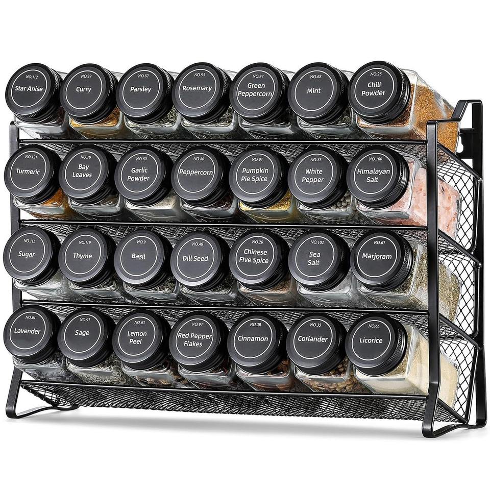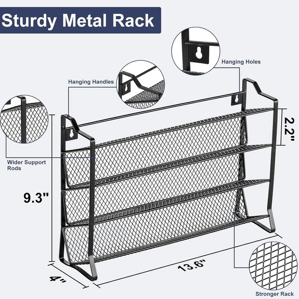 Estante para especias de cuatro niveles, malla de hierro forjado, sin necesidad de taladrar, almacenamiento en gabinete para tarros de condimentos de cocina, tapa hermética, tamaño L