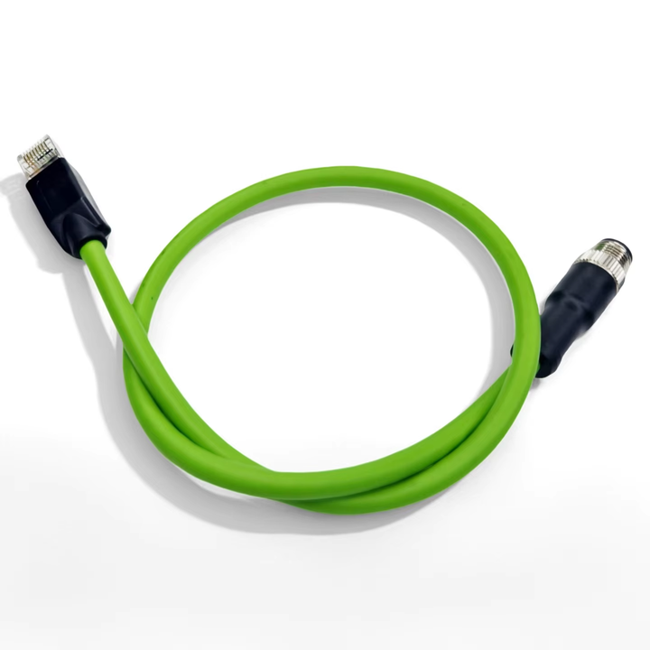 Cable de red industrial blindado CAT6E con núcleo de cobre en forma de barra, impermeable IP67, M12 a RJ45, de cuatro núcleos tipo D para cámaras y sensores informáticos