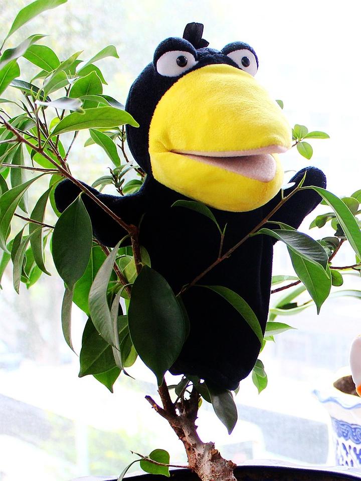 Marioneta de Mano de Zorro y Cuervo con Boca Móvil, Peluche Temático de Animales para Maternidad, Actuaciones, Cuentos y Teatro