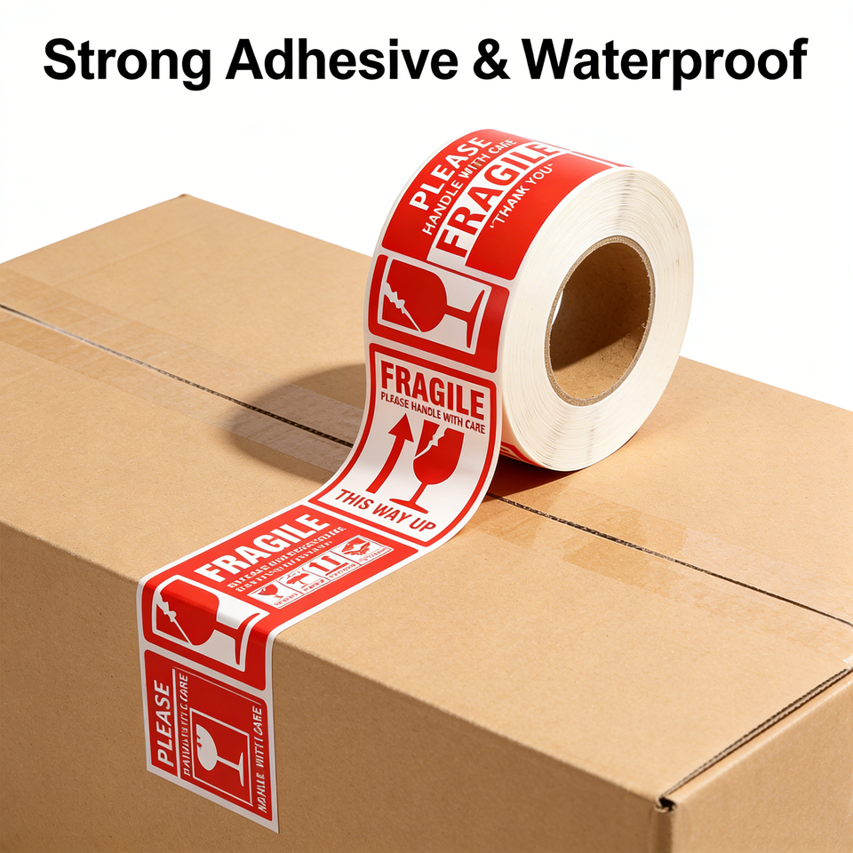 Etiquetas Adhesivas de Advertencia de Frágil para Cristalería, Formas Personalizables, Material Acrílico, Adhesivo Fuerte, Etiquetas de Código de Barras Anti-Falsificación