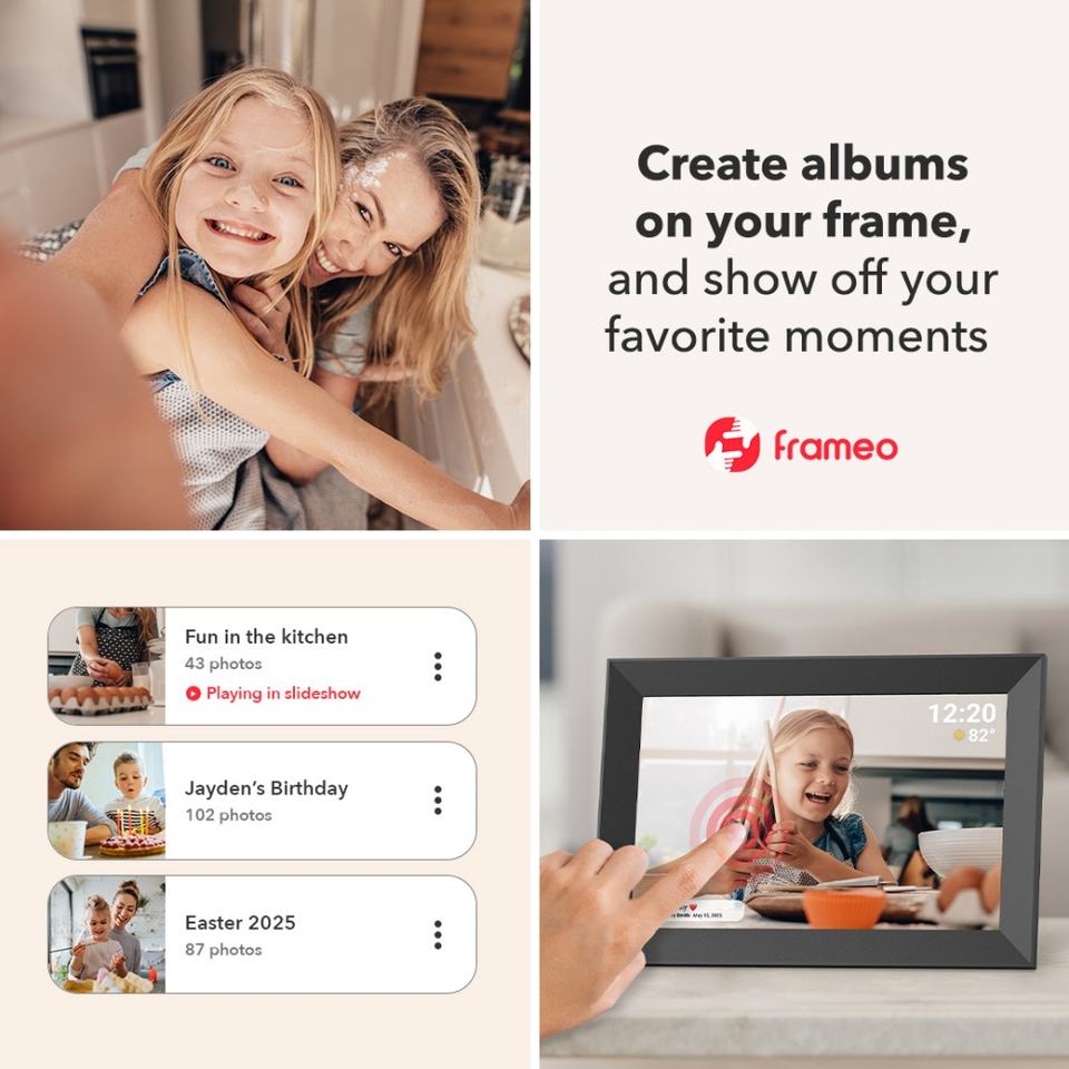 Frameo 10,1 pulgadas Smart WiFi Digital Photo Album Manage Frame con pantalla táctil Subir fotos y videos a través de la aplicación gratuita
