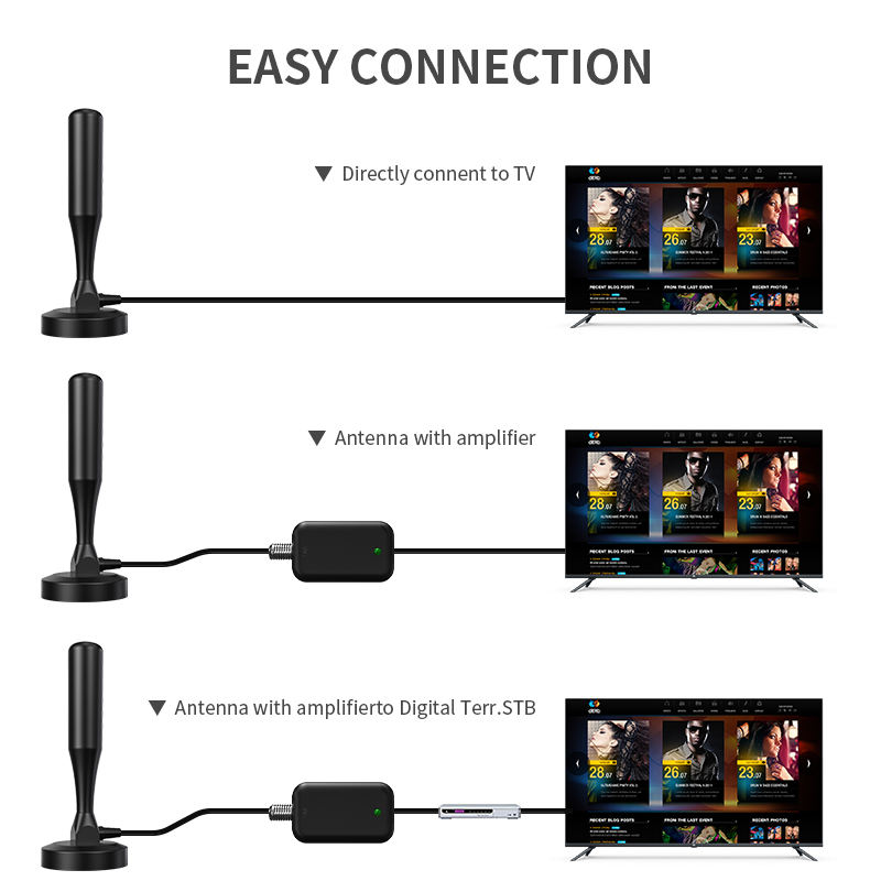 Canal libre Dvb T2 Uhf al aire libre Digital interior Tv Antena Base magnética Tv Antena alta ganancia Hd Tv Antenas