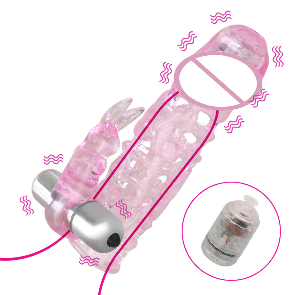 Caja personalizada gratis-Herramientas de productos para adultos Condones de silicona reutilizables Vibradores dobles Condón Agrandar el pene Malet Cock Sleeve