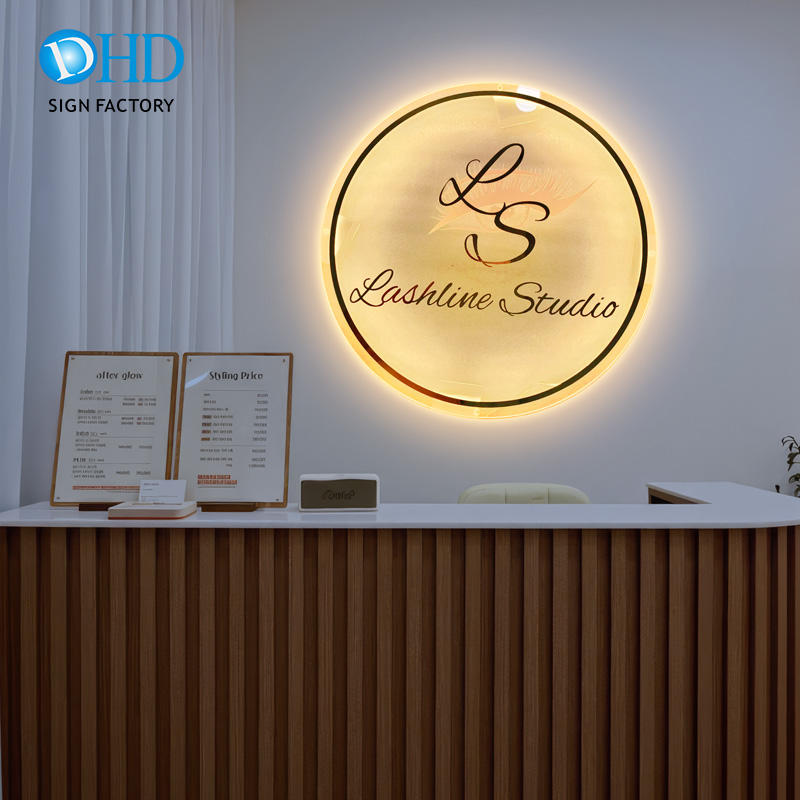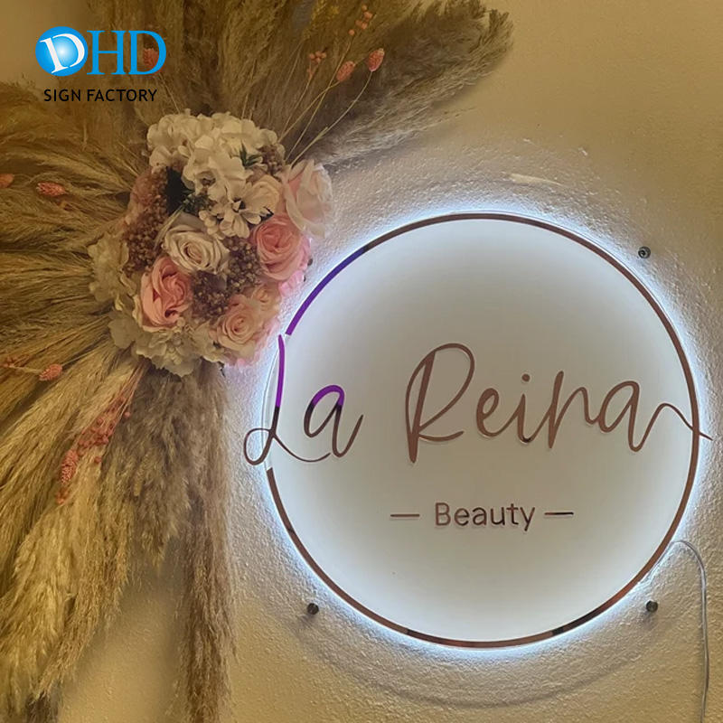 Letrero LED Personalizado con Diseño Circular, Letrero con Logotipo LED, Letrero Acrílico Personalizado para Salón de Belleza, Spa, Tienda
