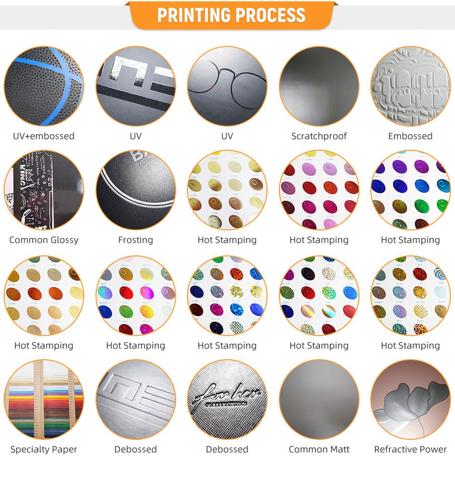 Barnizado, Estampado, Relieve, Laminación brillante, Revestimiento UVManejo de la impresión