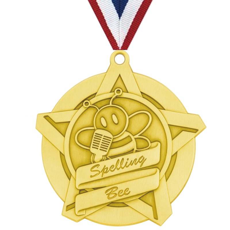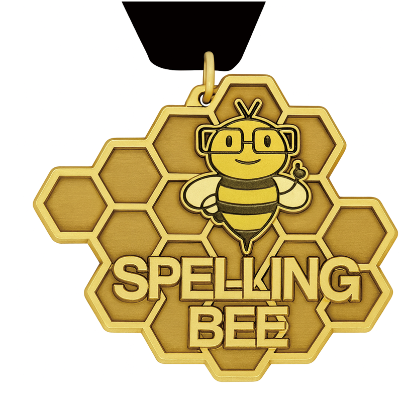 Logotipo de diseño gratuito, medallas de abeja de ortografía de metal deportivo personalizado, medalla de recuerdo