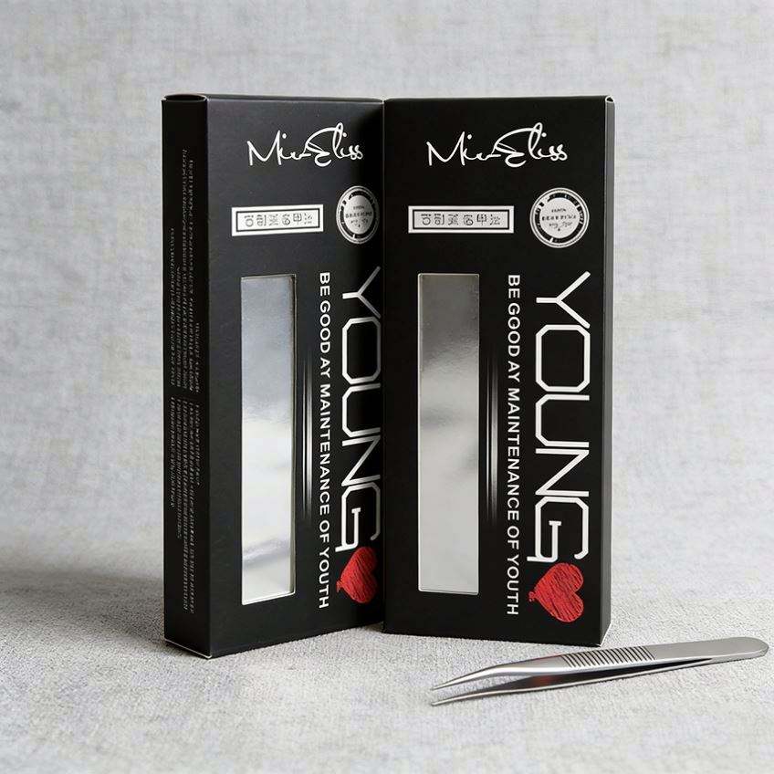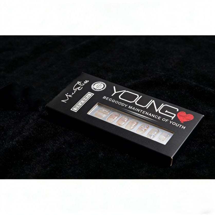 Caja de Embalaje de Cartulina Metálica Premium con Panel Transparente para Arte de Uñas, Diseño Gratuito, Estampado Plateado, para Películas Decorativas de Uñas