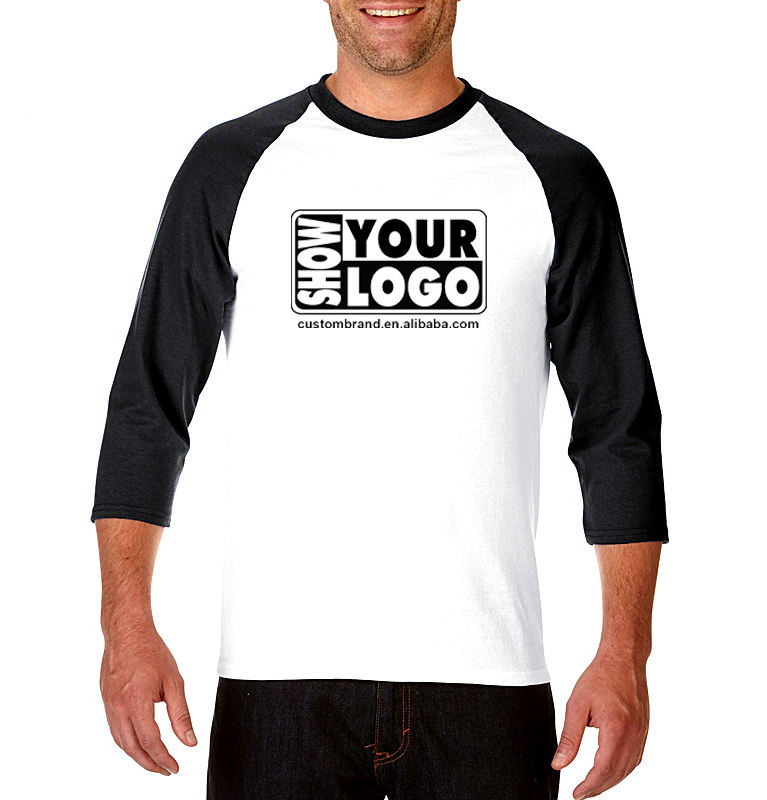 Etiquetas gratis Imprimir y colgar Etiquetas Camiseta personalizada Impresión de alta calidad 100% algodón Unisex Tamaño 34 Manga Raglan Camiseta para hombres