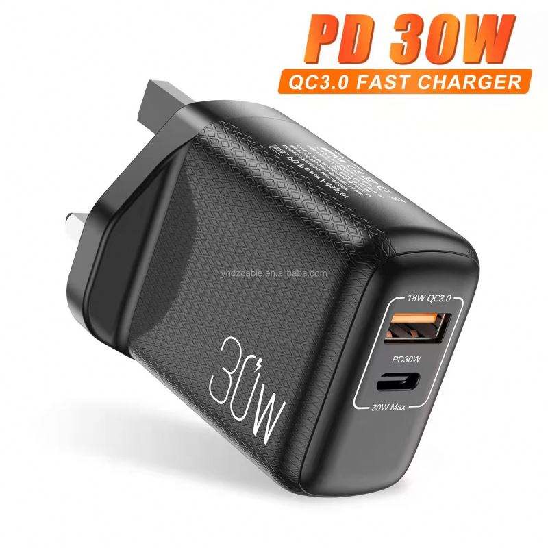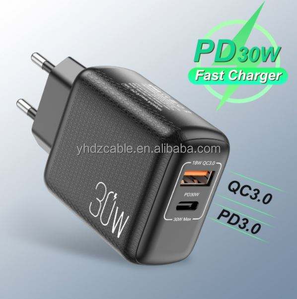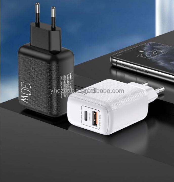 Muestra Gratuita: Cargador de Pared con Doble Puerto USB C+USB QC3.0 de 30W para iPhone, Samsung, Huawei