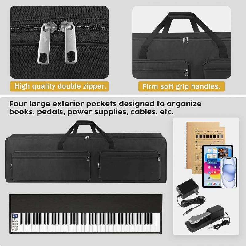 Estuche para Teclado de 49 Teclas con Correa Ajustable y 6 Bolsillos para Accesorios de Teclado, Muestra Gratuita