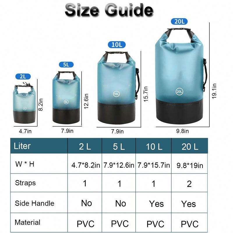 Muestra gratis BSCI Custom 5L 10L 20L 30L Kayak Rafting Canotaje Natación Roll Top Dry Bag Mochila para Camping Pesca