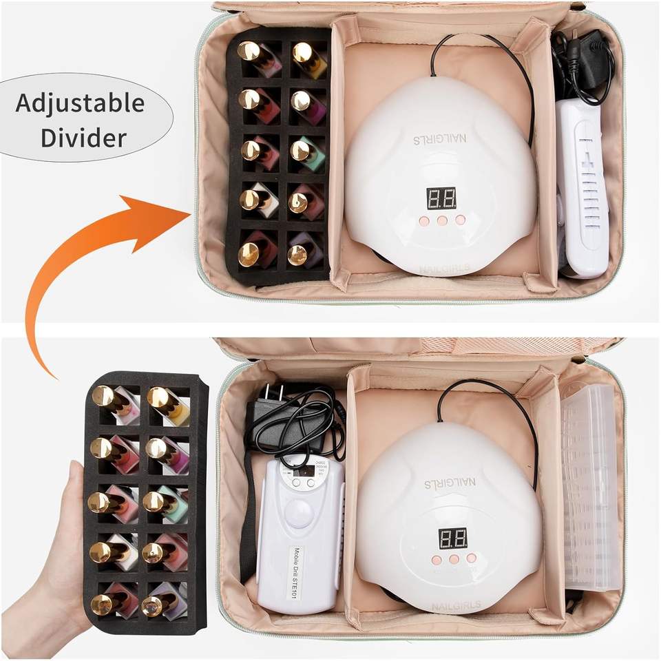 Estuche de Transporte Organizador de Esmalte de Uñas de Doble Capa con Capacidad para 30 Botellas, con Lámpara de Uñas, para Mujer, Muestra Gratuita