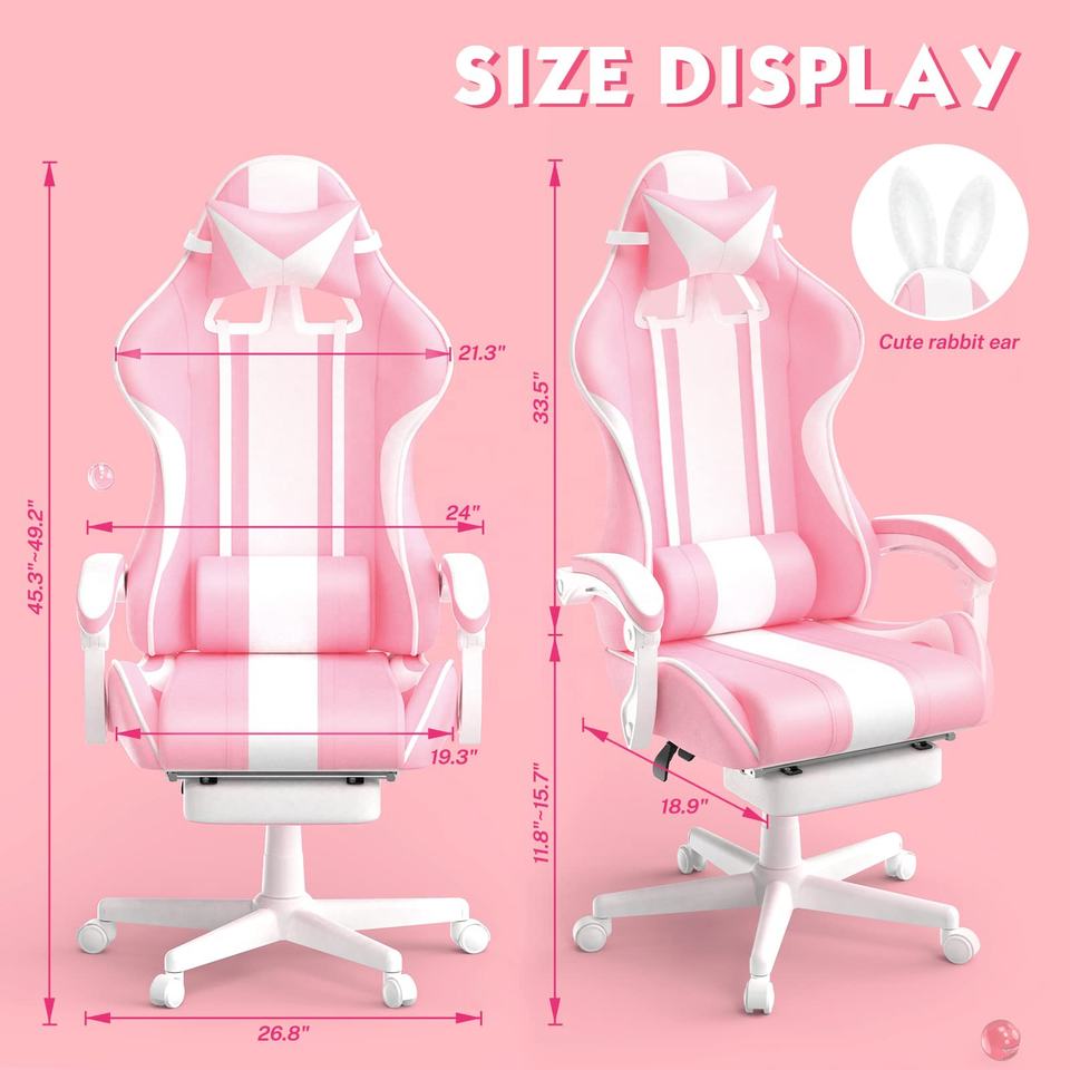 1 ud./cartón, sillas de juegos rosas para bebés a precio barato para adultos, silla de juegos de PC de carreras con reposapiés y masaje, bonita silla de escritorio para juegos para niñas