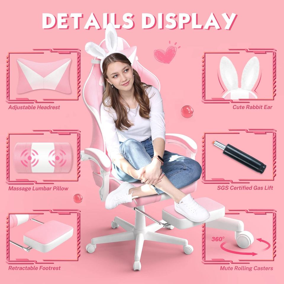Plegable, Lloguer de, Extensible, Giro, Masaje, Fundas desmontables, De refrigeración, Cubierta extraíble , Con reposapiés, Con función de masaje, Luces del blanco LED RGB, Con altavoces de diente azul, 180 grados de reposición, Altura ajustable, 80mm clase 4 gasliftCaracterística