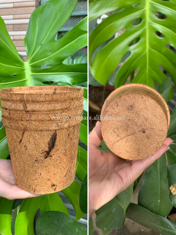 Maceta de fibra de coco de muestra gratis Eco2go Vietnam's 100% fibra de coco natural precio barato para uso en el jardín