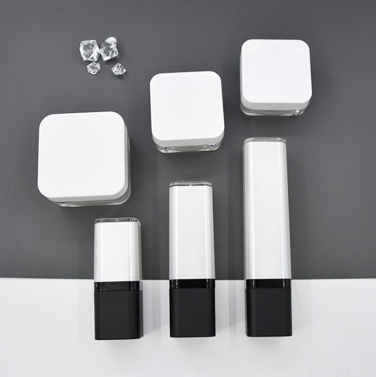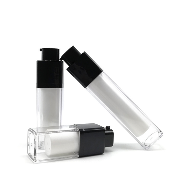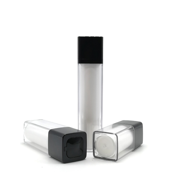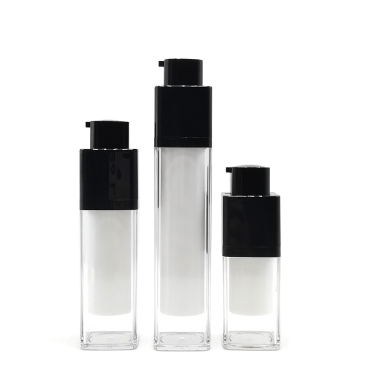 Botella de loción al vacío con rotación, botella de loción al vacío con tapa negra UV cuadrada, esencias cosméticas, 15ml, 30ml, 50ml, muestra gratis