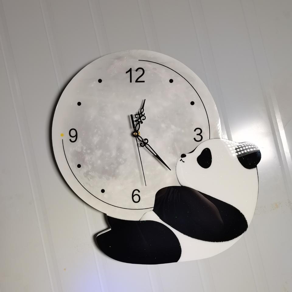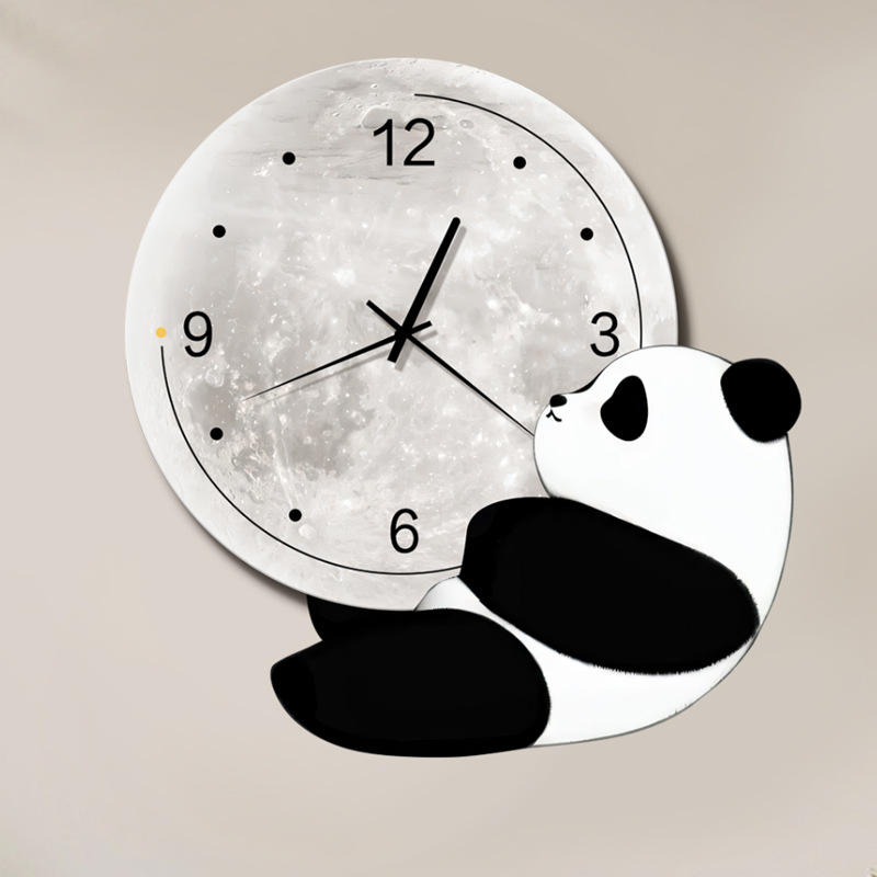 Muestra gratis creativo lindo Panda Reloj de pared silencioso habitación de niños nórdicos Simple reloj de dibujos animados Reloj de pared para sala de estar