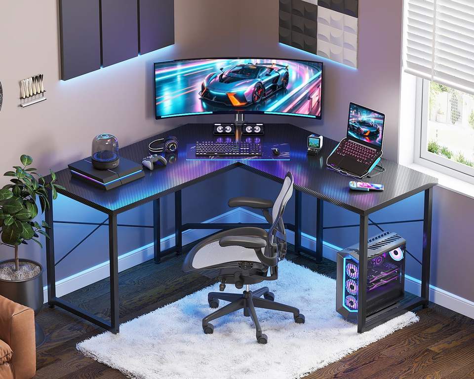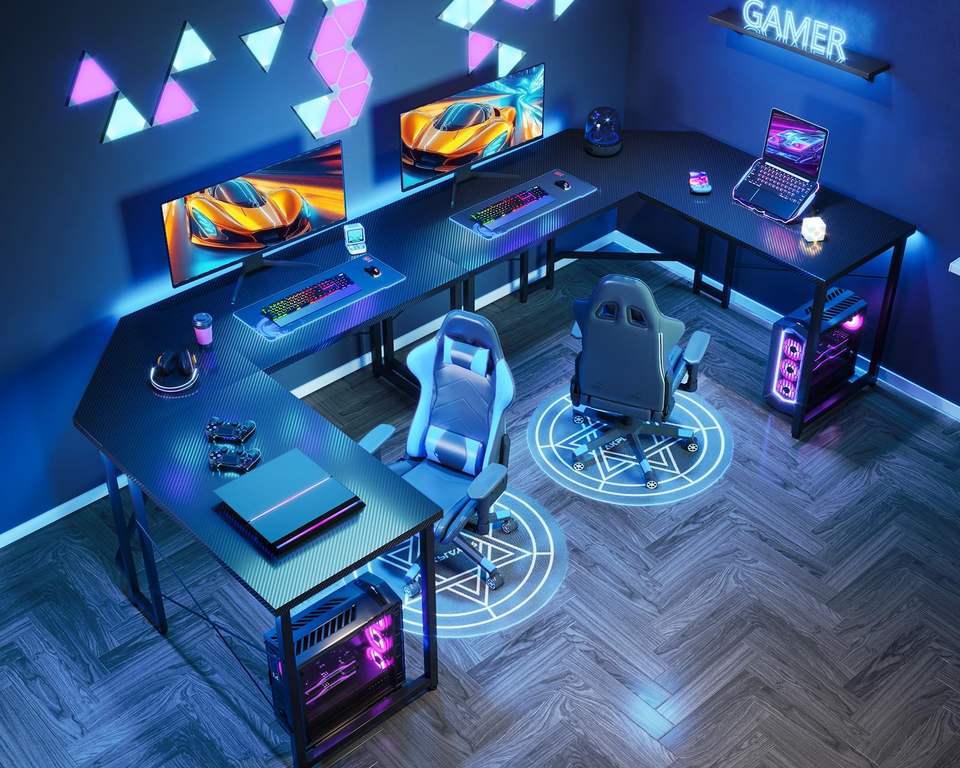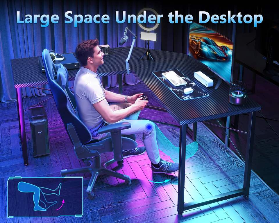 Muestra gratis de logotipo personalizado en forma de L, escritorio de juegos de esquina, Ordenador de carreras, luz RGB, mesa de jugador, escritorio de juegos de oficina con LED